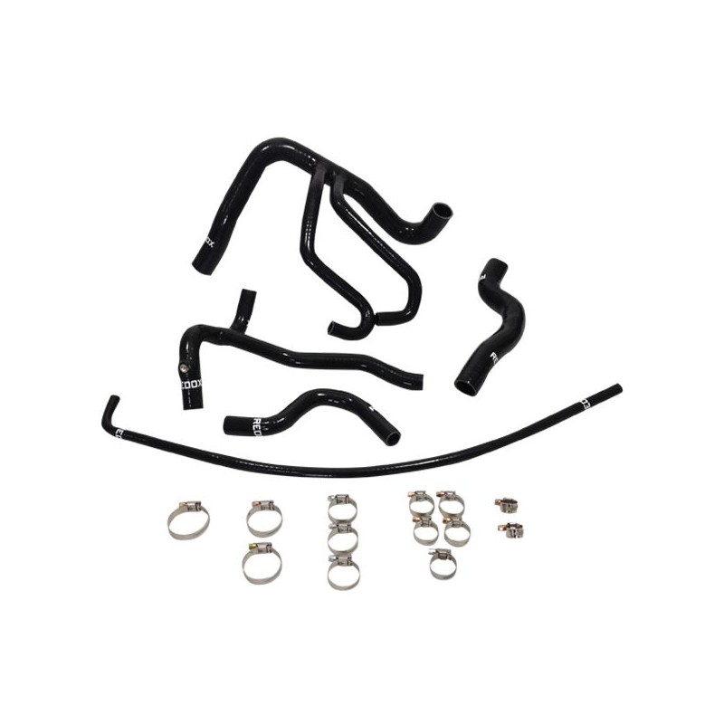 Le kit REDOX regroupe 5 durites de refroidissement hautes performances en silicone VMQ, spécifiquement développées pour remplacer l'intégralité des durites d'eau d'origine du circuit de refroidissement de la Peugeot 206 RC 2.0 16V. La construction multicouche en silicone VMQ (3 plis, épaisseur de paroi 4 mm) garantit une résistance thermique de -50°C à +180°C en service continu ainsi qu'une pression de service de 3 bars, bien supérieure aux sollicitations du circuit d'eau de série. Contrairement aux durites EPDM d'origine, le silicone VMQ ne durcit pas avec le temps, ne se fissure pas sous l'effet des cycles thermiques et conserve durablement sa souplesse.